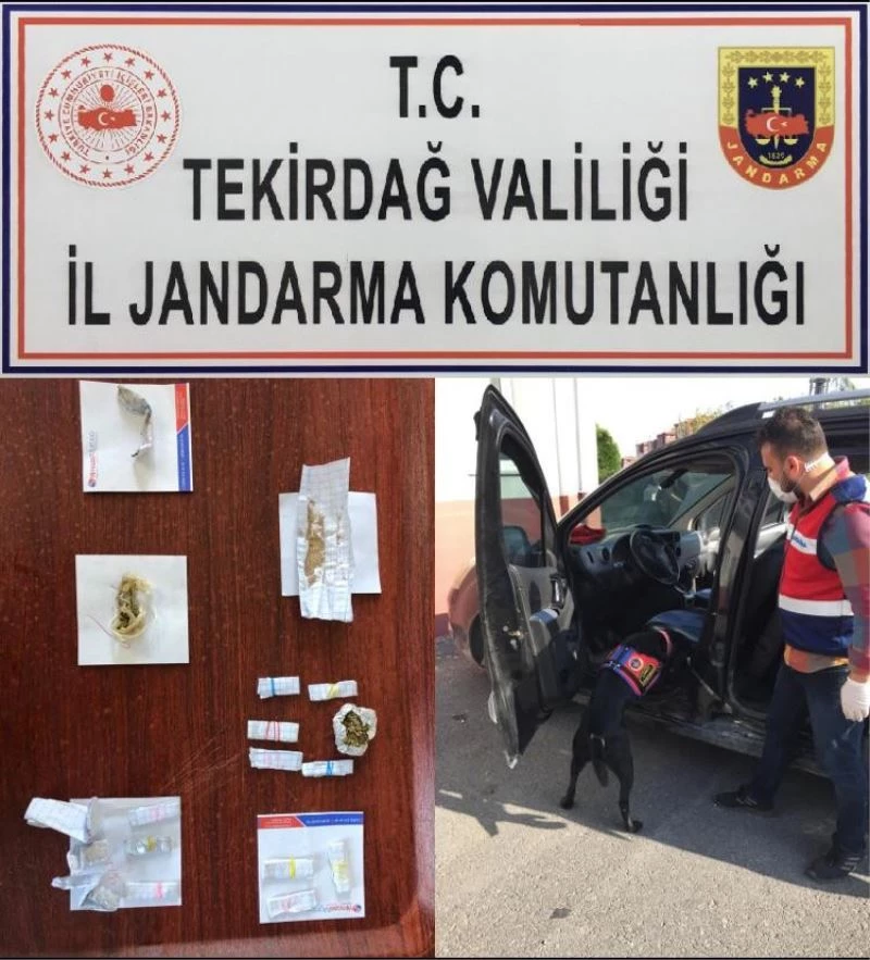 Tekirdağ İl Jandarma Komutanlığı ekipleri uyuşturucuya geçit vermiyor. Ekiplerce Tekirdağ’ın Ergene ilçesi Velimeşe Jandarma Komutanlığı sorumluluk alanında bir araca yönelik operasyon düzenlendi. Yapılan operasyon neticesinde, araç içerisinde bulunan H.İ.K., E.Y., M.U., F.Ç. ve Y.Ç. isimli şahısların üst araması ile araç içerisinden dışarı atılan satışa hazır toplam 15 fişek halinde 9 gram eroin, iki fişek halinde 4 gram bonzai ve bir fişek halinde 2 gram toz esrar maddesi ele geçirildi.