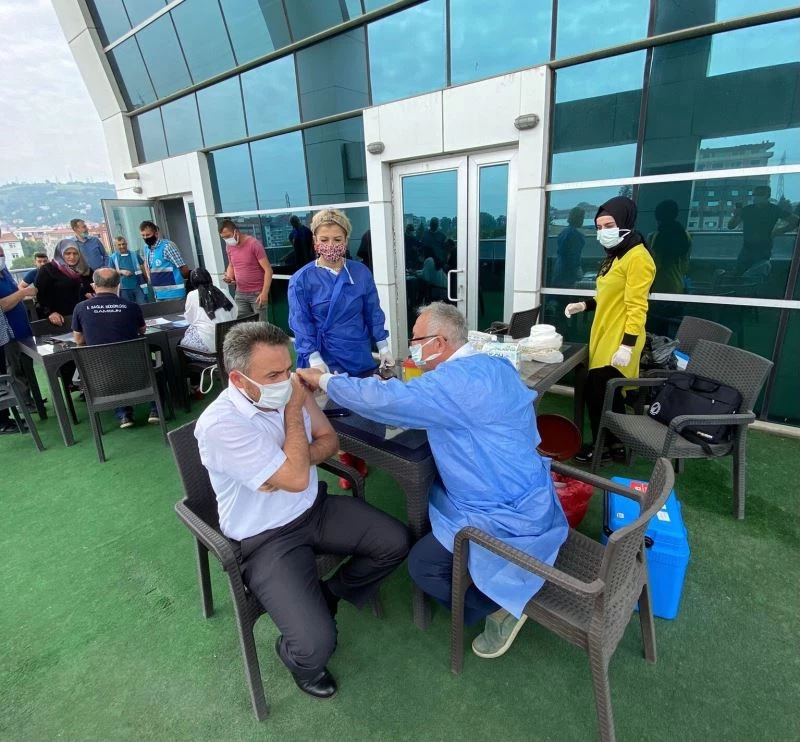 Tekkeköy Belediyesinde kurulan Kovid-19 seyyar aşı istasyonunda işçiler, memurlar, şirket işçileri ve diğer birimlerde çalışanların ilk doz aşıları yapıldı. İl Sağlık Müdürlüğü ekipleri, belediyenin üçüncü katındaki terasta kurulan Kovid-19 seyyar aşı istasyonunda aşılama işlemini gerçekleştirdi. Bu kapsamda belediyenin çeşitli birimlerinde ve sahada çalışan yaklaşık 150 personelin ilk doz aşıları yapıldı.