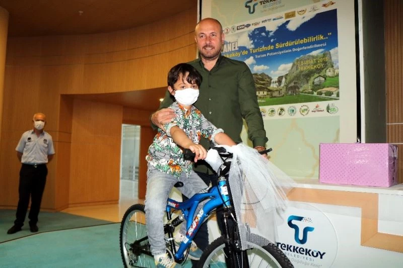 Ödül töreninin açılışında konuşan Tekkeköy Belediyesi Çevre Koruma ve Kontrol Müdürlüğü personeli Çevre Mühendisi Büşra Aşkın, belediye olarak son 3 yılda 12 ton bitkisel atık yağ, bin 200 kg atık pil ve 2 bin ton ambalaj atığı topladıklarını söyledi.