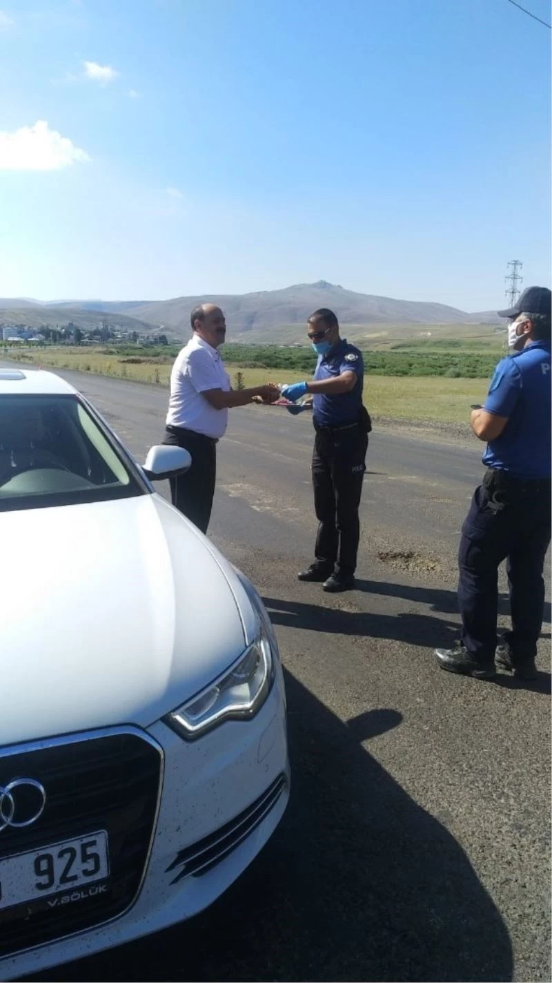 Erzurum’un Tekman ilçesinde bulunan polis noktalarında emniyet personelleri sürücülere bayramlık şeker ve kolonya ikram ettiler.