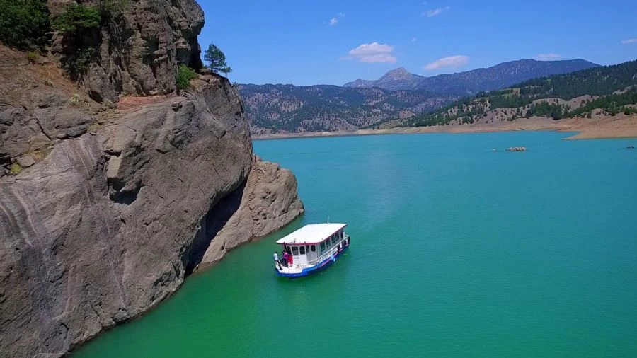 Kahramanmaraş'ta, Menzelet Barajında gerçekleşen tekne turları ile vatandaşlar, baraj içerisinde yer alan Ali Kayası'nın eşsiz manzarasını görme imkanı buluyor.