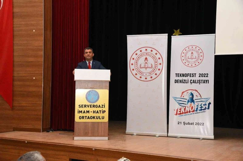 Hayal eden, araştıran, geliştiren, üreten Türkiye için 2022 yılında Samsun’da düzenlenecek olan Teknofest Havacılık, Uzay ve Teknoloji Festivaline hazırlık amacıyla "Teknofest 2022 Tecrübe Paylaşım Etkinlikleri" adı altında Milli Eğitim Bakanlığı Din Öğretimi Genel Müdürlüğü bünyesindeki okullarda görev yapan öğretmenler ile Teknofest 2021 finallerine katılarak ödül alan tecrübe sahibi öğretmenlerin buluşturulması ve bilgi paylaşımlarında bulunulması kapsamında ülkemiz genelinde 18 ilde Çalıştay yapılması planlandı. Denizli’nin Merkezefendi İlçesi Servergazi İmam Hatip Ortaokulunda yapılan Teknofest 2022 Denizli Hazırlık Çalıştayı açılışına Denizli İl Milli Eğitim Müdürü Süleyman Ekici, okul müdürleri ve öğretmenler ve öğrenciler katıldı. İl Milli Eğitim Müdürü Süleyman Ekici Teknofest 2022 Denizli Hazırlık Çalıştayı açılış konuşmasında, “Gençler, hayal eden, kendini geliştiren, üreten ve irade ortaya koyan bir Türkiye için bizim yapacağımız çok şeyler var. Öncelikle akademik anlamda yapmış olduğumuz çalışmalar ile bunun yanında kültürel, sportif çalışmalar ve farklı projelerde etkili ve yetkili olabilmemiz için bizlere düşen çok önemli görevler var. Denizli olarak belli bir hedefi tutturmuş bir iliz. Ama daima daha iyisi için çalışıyoruz. Bizler sizleri hayata hazırlarken bugünün şartlarına göre değil geleceğe göre hazırlıyoruz. Bugün bugünde kalıyor. Yarını planlamak için kim nerede daha iyisini yapıyorsa onları geçmemiz gerekiyor ve onların yaptığından daha iyisini yapmak bir zaruriyet halini alıyor” dedi.