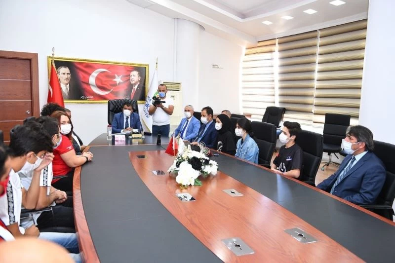 Teknofest’te ödül kazanan öğrencilerden Başkan Gürkan’a ziyaret
