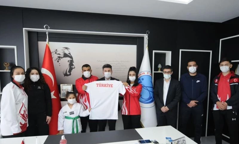 İl Özel İdaresi Gençlik Spor Kulübü tekvando sporcuları Furkan Aslanargun, Edanur Aslan, Zehra Gündüz, Hülya Demir, Osman Akpınar ve küçük sporcu Elif Rana Tohumcu, 7 Aralık Üniversitesi Rektörü Prof. Dr. Mustafa Doğan Karacoşkun ile Rektörlük Makamında bir araya geldi. Millî sporcuların Antrenörleri Kilis Tekvando İl Temsilcisi Mustafa Tohumcu ile Üniversite öğretim üyesi Fatih Budak da eşlik etti. Sporcuları Rektör Karacoşkun’a kendilerine sağladıkları katkılardan dolayı teşekkür ettiler. Karacoşkun spor konusunda en önemli şeyin istikrar olduğunu vurgulayarak, istikrarlı ve azimli bir çalışma sonucunda her başarının elde edilebileceğini belirtti.
