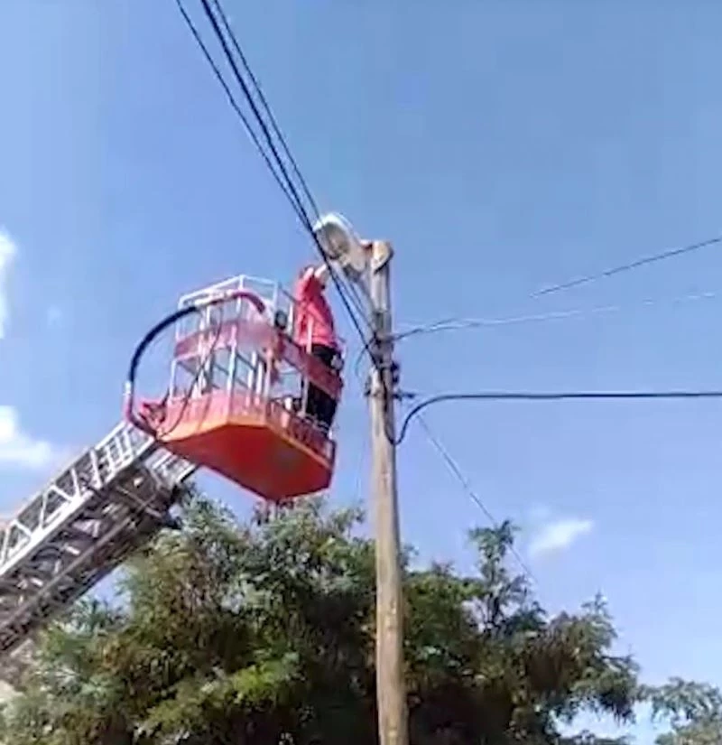 Kırıkkale’nin Keskin ilçesinde telefon direğinde mahsur kalan kedi itfaiye ekiplerince kurtarıldı.