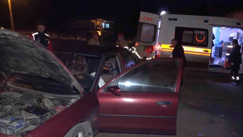 Telefon direğine çarpan otomobil evin bahçesine uçtu: 1 yaralı