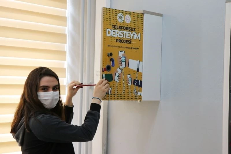 Aksaray’da eğitim verimliliğini artırmak amacıyla başlatılan “Telefonsuz dersteyim” projesi ile öğrenciler ve öğretmenler telefonlarını sınıflarda yapılan dolaplara bırakıp ders işliyor.