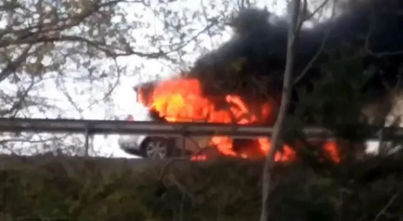 TEM Otoyolu Sakarya geçişinde otomobil alev alev yandı. İtfaiye ekiplerince söndürülen yangında araç kullanılamaz hale gelirken, otomobilin alev topuna döndüğü anlar cep telefonu kamerası ile kaydedildi.