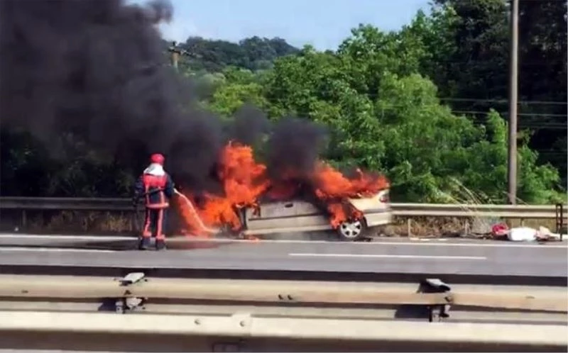 Anadolu TEM Otoyolu Sakarya geçişinde seyir halinde olan bir otomobil alev alev yandı. Ölen veya yaralananın olmadığı yangında otomobil kullanılamaz hale gelirken, dumanlar otoyolu kapladı.