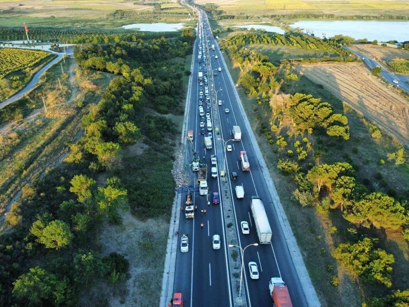 TEM Otoyolu’nda oluşan trafik ise dron ile havadan görüntülendi.