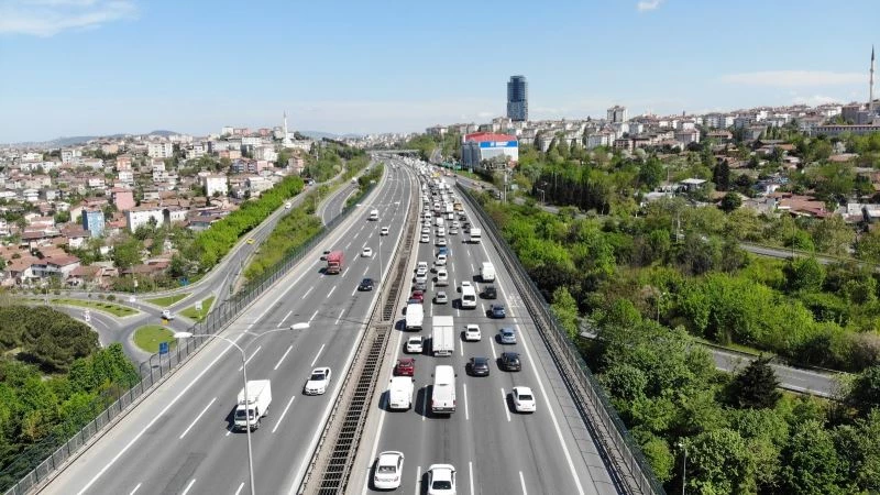 TEM Otoyolu’nda denetim yoğunluğu havadan görüntülendi