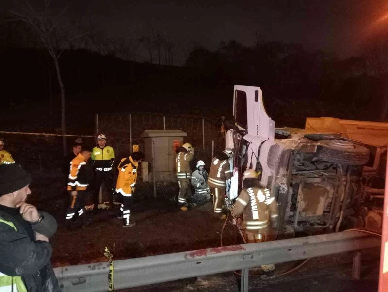 TEM Otoyolu’nda hafriyat kamyonu devrildi: 1 ölü, 1 yaralı