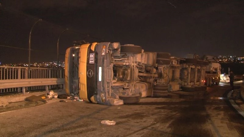 TEM Otoyolu Avcılar mevkiinde hurda yüklü bir tır kontrolden çıkarak devrildi, kazada sürücü yaralandı.