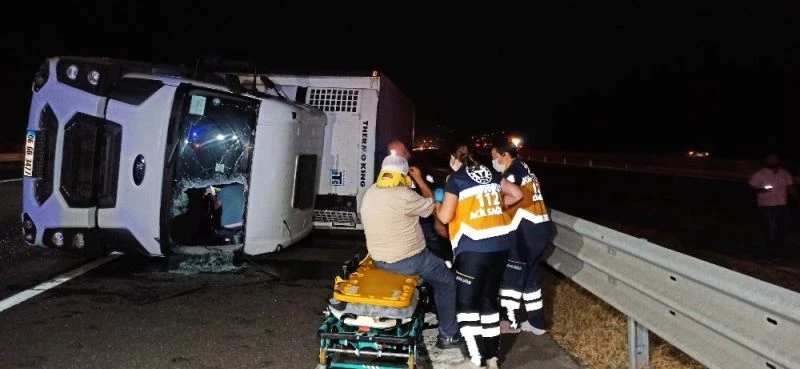 TEM Otoyolu’nda sürücüsünün direksiyon hakimiyetini kaybettiği kamyon devrildi. Kazada kamyon sürücüsü yaralandı.