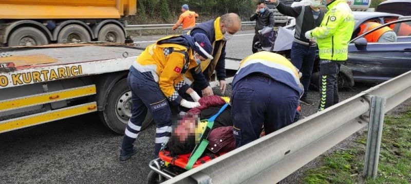 Kaza, Düzce TEM Otoyolu Yeşil Yayla mevkiinde meydana geldi. Edinilen bilgilere göre, Ankara’dan İstanbul istikametine seyir halinde olan Ozan Demirez idaresindeki 06 BFB 076 plakalı Volkswagen marka otomobil aynı yönde seyir halinde olan Aytekin Yılmaz idaresindeki 16 STG 60 plakalı SsanYong Marka arazi aracına arkadan çarptı. Çarpışmanın etkisi ile lüks otomobil sürücüsü araç içerisinde sıkıştı. Kaza bölgesine sağlık, polis, jandarma ve kara yolları ekipleri sevk edildi. Otomobil sürücüsü ekipler tarafından sıkıştığı yerden çıkartılarak sağlık ekiplerince olay yerinde ilk müdahalesinin yapılmasının ardından Düzce Atatürk Devlet Hastanesi Acil Servisine kaldırılarak tedavi altına alındı. Arazi aracının sürücüsü Aytekin Yılmaz, ‘Orta şeritte seyir halindeydim. Arkadan bir araç çarptı. Ne olduğunu anlamadım. Orta şeritte bir tur döndüm. Daha sonra bariyerlere çarparak durabildim. Allah’tan arkamdan başka bir araç gelmiyordu’ dedi. Kaza nedeni ile tek şeritten sağlanan yol, araçların kaldırılması ile normal seyrine döndü.