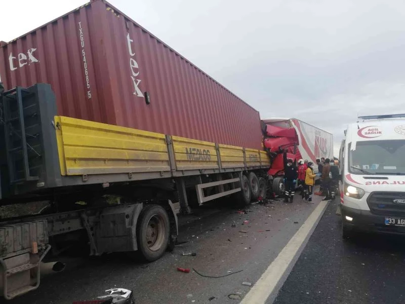 Mersin’in Tarsus ilçesi TEM otoyolu Yenice bölgesinde önünde giden tıra çarpan tırın şoförü ağır yaralandı.