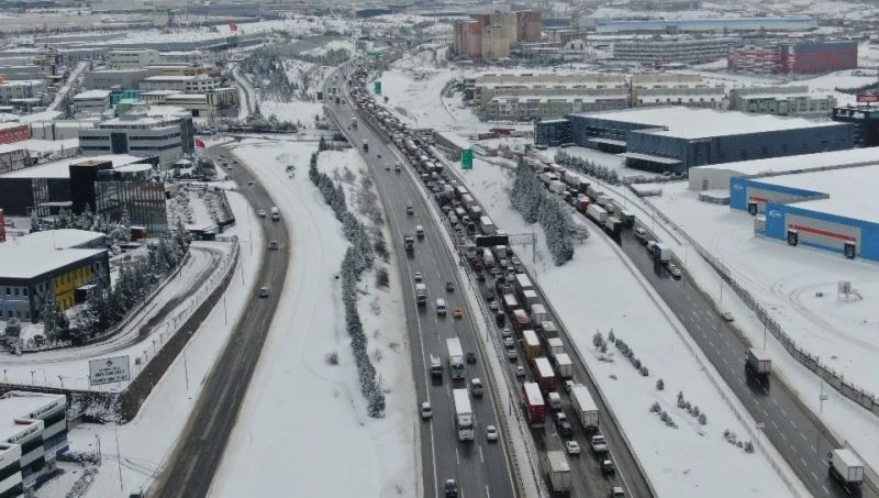 İstanbul’da etkili olan kar yağışı hayatı olumsuz etkiledi. Yoğun kar yağışı nedeniyle İstanbul çıkışında Tem otoyolu Tuzla mevkiinde trafik kilitlendi. Kilometrelerce araç kuyruğu oluşurken, yoğun trafik havadan görüntülendi.