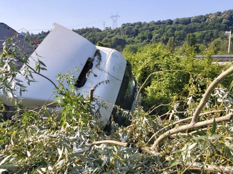 Anadolu TEM Otoyolu Sakarya geçişinde sürücüsünün kontrolünden çıkan tır şarampole devrildi. Tır şoförü ise itfaiye ekiplerince bulunduğu yerden çıkarılarak hastaneye kaldırıldı.