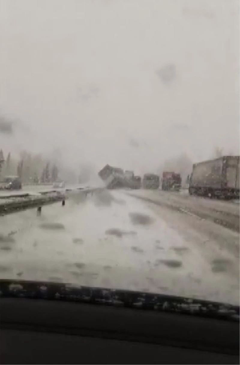 DÜZCE(İHA) – Düzce’de hafta sonu etkili olan kar yağışı ile birlikte TEM otoyolu İstanbul istikametinde 8 aracın karıştığı zincirleme trafik kazasının görüntüleri ortaya çıktı. Görüntülerde direksiyon hakimiyeti kaybedilen tırın, önünde seyir halinde olan tır, kamyon ve otomobillere çarpması görülüyor.
