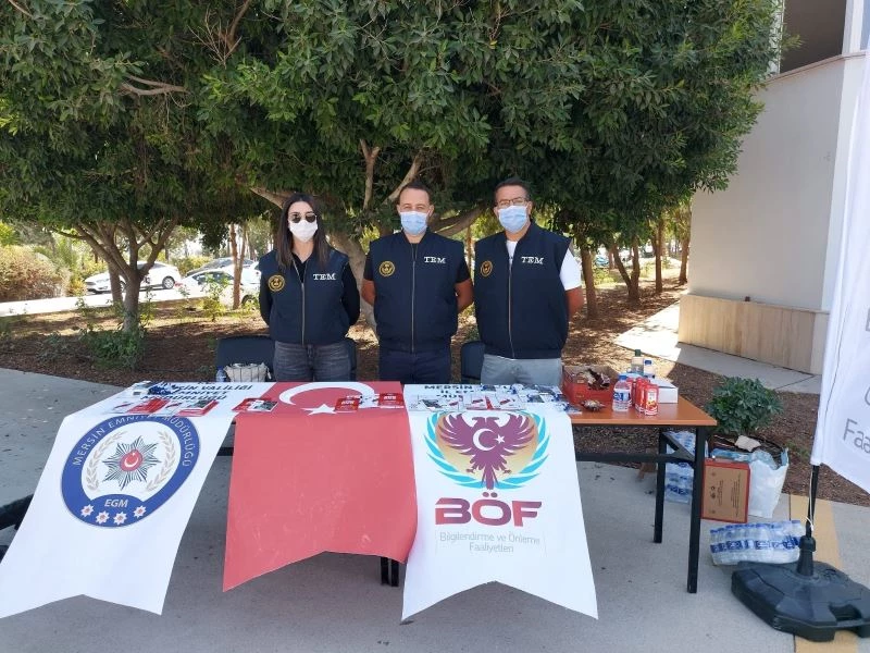 Mersin’in Tarsus ilçesinde polis, okulların açılmasıyla birlikte terör konusunda bilgilendirme yaptı. Tarsus Üniversitesi’nde stant açan polisler, öğrencilerle tek tek ilgilendi.