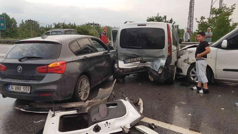 TEM’de 6 aracın karıştığı kazada ortalık savaş alanına döndü: 2’si çocuk 8 yaralı