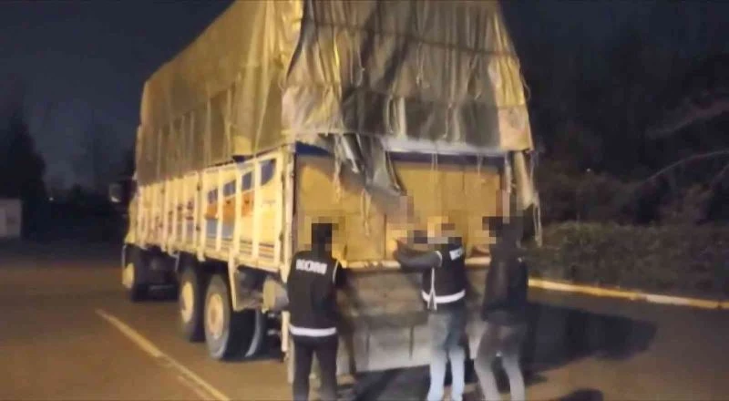 Kocaeli Tem Otoyolu’nda polis ekipleri tarafından durdurulan kamyonda arama yapıldı, 7 milyon 630 bin adet gümrük kaçağı makaron ele geçirildi.