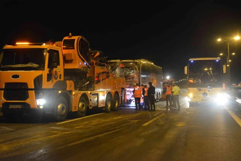 TEM’de bir minibüs ve iki yolcu otobüsü zincirleme kazaya karıştı: 4 yaralı