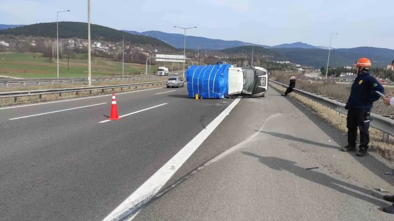 Bolu’da TEM Otoyolu’nda seyir halindeyken kontrolden çıkan kamyonet devrildi.