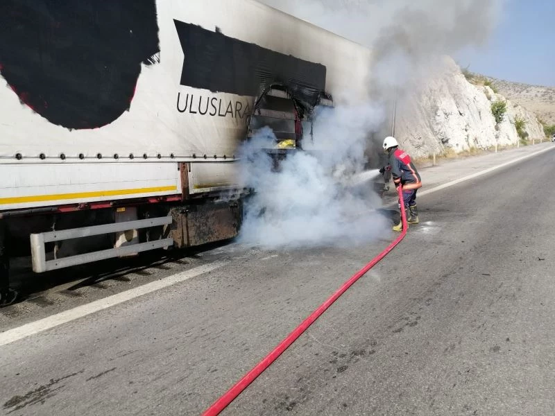 Sürücünün durumu fark ederek aracı güvenlik şeridine çektiği olay esnasında, alevler dorse kısmında bulunan kükürte sıçradı.