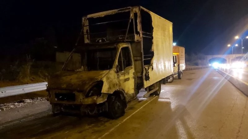 Kocaeli’nin Dilovası ilçesi TEM Otoyolunda seyir halindeki kamyonet alev alev yandı.