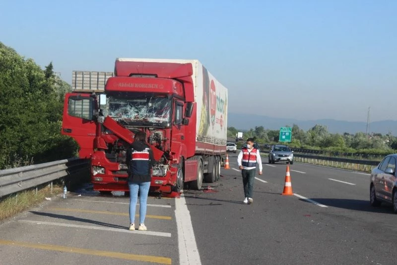 DÜZCE(İHA) – TEM Otoyolu Düzce kesiminde tır ile kamyonun çarpıştığı kazada kamyonda bulunan boyalar yola aktı. Kazada tır içinde bulunan 4’ü çocuk toplam 6 kişi yaralandı.