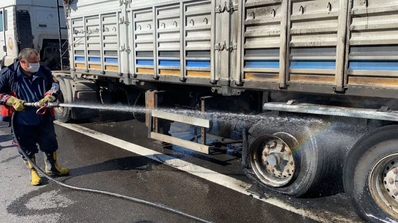 DÜZCE(İHA) – TEM Otoyolu Düzce kesiminde balatalarından tutuşan tuz yüklü tırın lastikleri yandı. İtfaiye ekiplerinin müdahalesi ile yangın kısa sürede söndürüldü.
