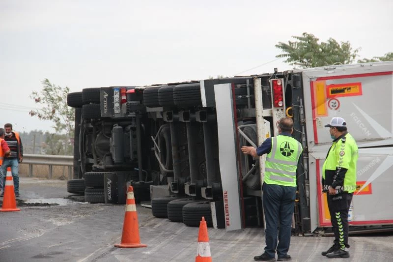 TEM’de yolcu otobüsü ile çarpışan tır devrildi: 3 yaralı