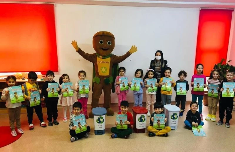 Slaytlar eşliğinde kendilerine aktarılan bilgileri can kulağı ile dinleyen öğrenciler, Düzce Belediyesinin çevreci maskotu Fındıkcanın da katıldığı eğitimlerde keyifli zaman geçirdiler.