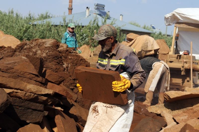 Bitlis’in Ahlat ilçesinde taş işçileri, 35-40 derecede Ahlat taşı çıkartarak ekmeklerini kazanıyor.
