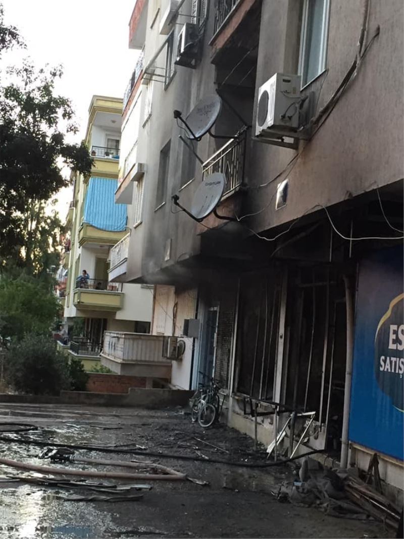 Yangın, Atatürk Mahallesi 1026 Sokak’ta bulunan bir apartmanın zemin katındaki tente dükkanında meydana geldi. Ne olduğunu anlamadan büyük bir patlama ile korku dolu anlar yaşayan apartman sakinleri, çocukları ile birlikte kendilerini kendilerini sokağa attı. Elektrik kontağından çıktığı belirtilen ve korku dolu anların yaşanmasına sebep olan yangın, itfaiye ekiplerince apartmanlara sıçramadan söndürüldü. Tüm tente malzemesi küle dönüşen ve maddi hasara neden olan yangının büyük şaşkınlıkla söndürülmesini izleyen işletme sahipleri Turgut İnci ve Güney Dizman, ülkenin içinde bulunduğu korona virüs yüzünden uzun süredir çalışamadıklarını, büyük bir umutla başladıkları yeni süreçte, böylesine acı bir durum ile karşı karşıya gelmelerinden dolayı duydukları üzüntüyü dile getirdi. Yangında büyük zarar gören dükkanlarının kullanılamaz hale geldiğini belirten işletme sahipleri, hiçbir esnafın böyle bir durumu asla yaşamamasını diledi.