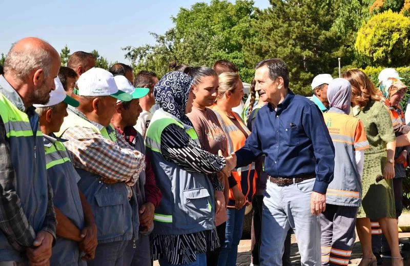 Bayramlaşma töreninde Tepebaşı Belediyesi emekçilerine seslenen Başkan Ataç, “Tepebaşı Belediyesi, Türkiye’de ayrıcalıklı bir belediye konumuna geldi. Bunda hepinizin tek tek emekleri var, elinize, ruhunuza sağlık. Biz rutin çalışmalarımızı en iyi şekilde devam ettireceğiz. Fen İşleri, Park ve Bahçeler gibi belediye hizmetlerimiz, yaz