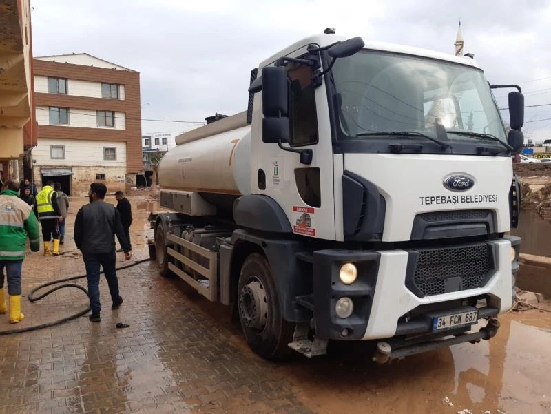 Tepebaşı Belediyesi Temizlik İşleri Müdürlüğü arazözü sel bölgesine müdahale amacıyla Şanlıurfa’da görev yaptı.