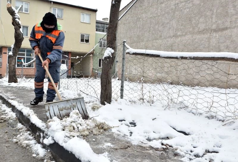Tepebaşı Belediyesi ekipleri, etkili olan kar yağışıyla birlikte küreme ve tuzlama çalışmalarına devam ediyor.