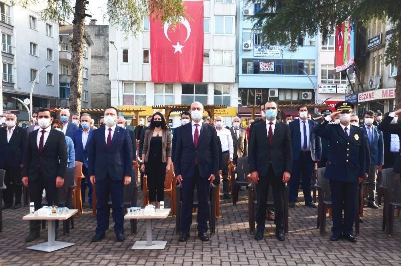 Samsun’un Terme ilçesinde 29 Ekim Cumhuriyet Bayramı düzenlenen törenle birlikte korona virüs tedbirlerine uyularak kutlandı.