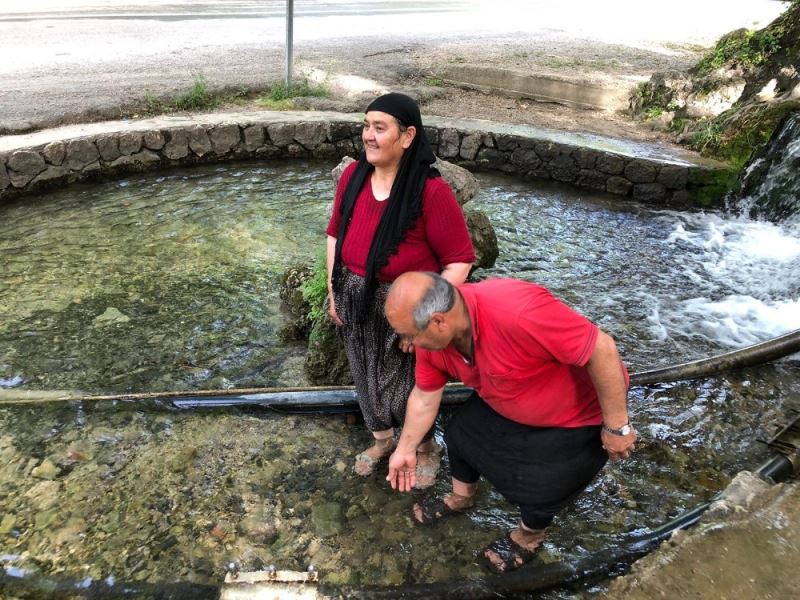 Çulluuşağı Mahallesinden Ünlüoğlu ailesi de köylerinden geldiklerini belirterek soğuk akarsuda eşi ile birlikte biraz serinlediklerini anlattı.