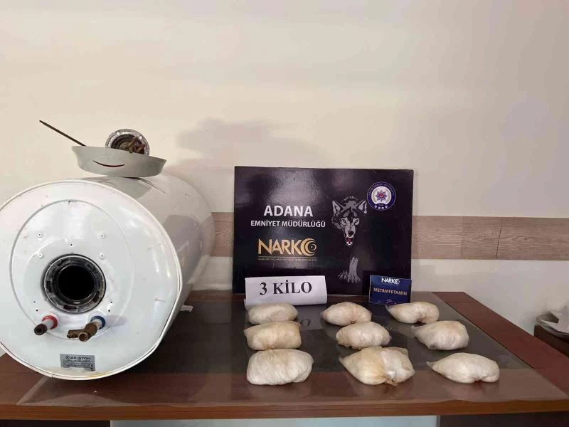 Adana Emniyet Müdürlüğü Narkotik Suçlarla Mücadele Şube Müdürlüğü ekipleri, kentte yüklü miktarda uyuşturucu madde taşındığı bilgisi üzerine harekete geçti. Ekipler, Tarsus-Adana-Gaziantep (TAG) Otoyolu’nda takibe aldığı mobilya ve beyaz eşya yüklü şüpheli kamyoneti durdurdu. Sürücü B.D.’nin (25) indirildiği araçta narkotik köpeği ‘Tinga’ ile arama yapıldı. Tinga’nın kamyonetin kasasına tepki vermesi üzerine yapılan detaylı aramada, termosifon içerisine gizlenmiş 3 kilogram metamfetamin ele geçirildi.