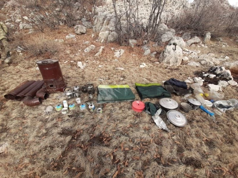 Malatya’da, terör örgütü mensuplarının 6-7 yıl önce kullandıkları, kayaların arasına gizlenmiş şekilde çeşitli yaşam malzemeleri ele geçirildi.