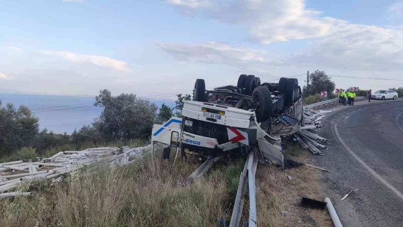 Çanakkale’nin Ayvacık ilçesinin Nusratlı rampalarında bir kamyonun bariyerleri aşarak ters dönmesi sonucu şoför hayatını kaybetti.