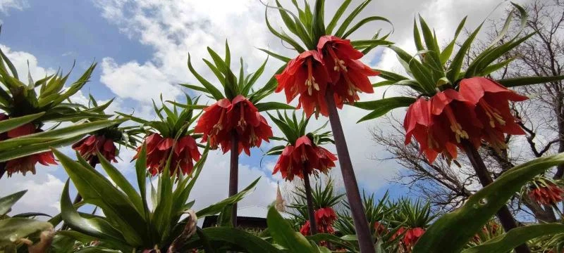 Van’ın Gevaş ilçesi Aydınocak Mahallesinde içinde bir türbenin de bulunduğu mezarlıkta yetişen ters laleler ziyaret edenleri büyülüyor.
