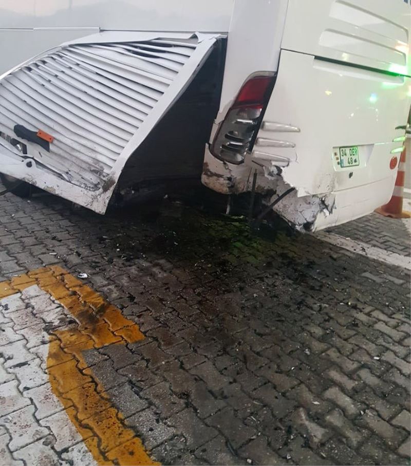 Tesislere dinlenmek için giren otomobil park halindeki otobüse çarptı: 1 ölü, 4 yaralı