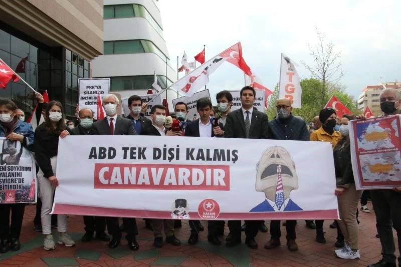 ABD Başkanı Joe Biden’in, 1915 olaylarını ‘Ermeni Soykırımı’ olarak tanıdığını ilan etmesi üzerine, Türkiye Gençlik Birliği, Ankara’daki ABD Büyükelçiliği önünde bir kınama açıklaması yaptı. Açıklamayı TGB adına Genel Sekreter Barış Demiralay okudu. Joe Biden’in aldığı bu kararın yok hükmünde olduğunu belirten Demiralay, “Dünyanın en büyük teröristi, milyonlarca insanın katili ABD’nin Büyükelçiliği önündeyiz. 24 Nisan günü ABD Başkanı Joe Biden, Amerika Birleşik Devletleri’nin 1915 olaylarını ‘Ermeni Soykırımı’ olarak tanıdığını ilan etti. En baştan ifade edelim. Bu karar yok hükmündedir! Ermeni soykırımı emperyalist bir yalandır. Hukuken hiçbir geçerliliği yoktur. Hiçbir tarihsel dayanağı yoktur” şeklinde konuştu.