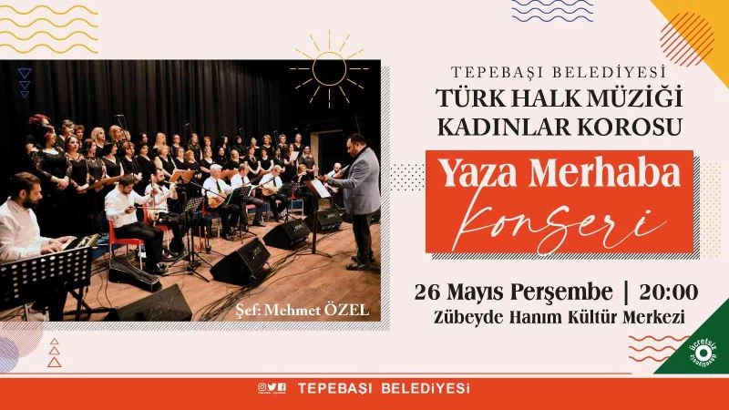 Tepebaşı Belediyesi Türk Halk Müziği Kadınlar Korosu, çalışmalarına Mehmet Özel şefliğinde devam ederken konserlerde Eskişehirli müzikseverler ile buluşmaya devam ediyor. Koro bu kez, ’Yaza Merhaba’ adlı konser ile sahneye çıkacak. Kadınlar Korosu konserde, birbirinden güzel türküleri seslendirecek. Katılımın ücretsiz olacağı konser, 26 Mayıs Perşembe günü saat 20.00’de Zübeyde Hanım Kültür Merkezi’nde gerçekleştirilecek.