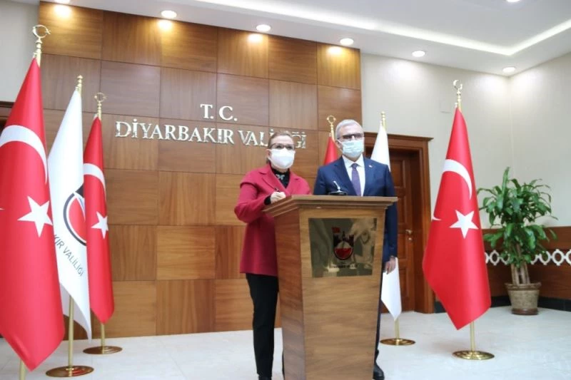 Diyarbakır’a gelen Ticaret Bakanı Ruhsar Pekcan, valilik konutunda iş dünyası ve oda başkanlarıyla bir araya geldi. Burada açıklamalarda bulunan Bakan Pekcan, esnafa müjdeli haber verirken, Diyarbakır’ın ihracat rakamlarını açıkladı. Bütün dünyanın pandemi nedeniyle hem sağlık hem ekonomik alanda çok zorlu süreçten geçtiğini vurgulayan Bakan Pekcan, Cumhurbaşkanı liderliğinde hem sağlık alanında hem de ekonomik aslında diğer ülkelerden ayrışarak çok başarılı bir şekilde yürüttüklerini söyledi. Bakan Pekcan, “İş insanımızın, esnafımızın bu süreçteki zorlukların farkındayız. Devlet olarak yanlarında olduğumuz her an hissettirmek için gayret sarf ediyoruz. Cumhurbaşkanımız 14 Aralıkta esnaflara yönelik 3 ay süreyle 1000 lira gelir kaybı desteği ve büyükşehirlerde 750, diğer şehirlerde de 500 lira olmak üzere kira desteği yardımı açıkladı. Gene geçtiğimiz günlerde özellikle kafe, restoranlarda cirosu 3 milyon liraya kadar olan işletmelerin ciro kaybının yüzde 50 ve üzeri olduğu işletmelerde ciro kaybının yüzde 3’ü kadar 2 bin liradan az, 40 bin liradan çok olmamak üzere gelir kaybı desteğini devreye aldık. IMF’nin en son açıkladığı rakamlara göre 2020 yılında dünya ekonomisinin yüzde 3,5 küçüleceği, bizim en büyük ticaret ortağımız olan Avrupa Birliği (AB) ülkelerinin yüzde 7 ile 10’da küçüleceği. Japonya’nın yüzde 5, Almanya’nın yüzde 5, İngiltere’nin yüzde 10, ABD’nin yüzde 3,5 küçülmesinin beklendiği 2020 yılında biz üçüncü çeyrekte göstermiş olduğumuz yüzde 6.7 büyüme ile ve IMF tarafında 2020 yılını pozitif büyüme ile kapayacak az sayıda ülkelerden olduğumuz ve Türkiye’nin büyümesi 1.2 olarak beklendiği açıklanmış bulunmakta. Bunu her insanımızın emeğiyle gerçekleştiriyoruz. Gene bu süreçte Türkiye gerçekten ihracatta üçüncü çeyrekte yüzde 33.4 büyüme gerçekleştirdik. Son çeyrekte de önceki çeyreğe göre yüzde 18.4 büyüme gerçekleştirdik. Bir önceki seneye göre yüzde 6 büyüme gerçekleştirdik” dedi.