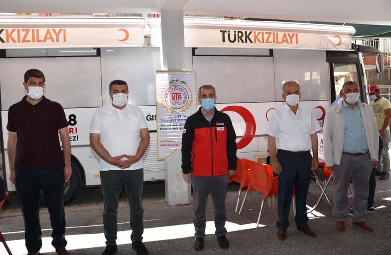 Malatya Ticaret Borsası tarafından, Malatya Kızılay Şubesi işbirliği ile gerçekleşen kan bağışı kampanyasında şire pazarında kayısıcı esnafları bağışta bulundu.